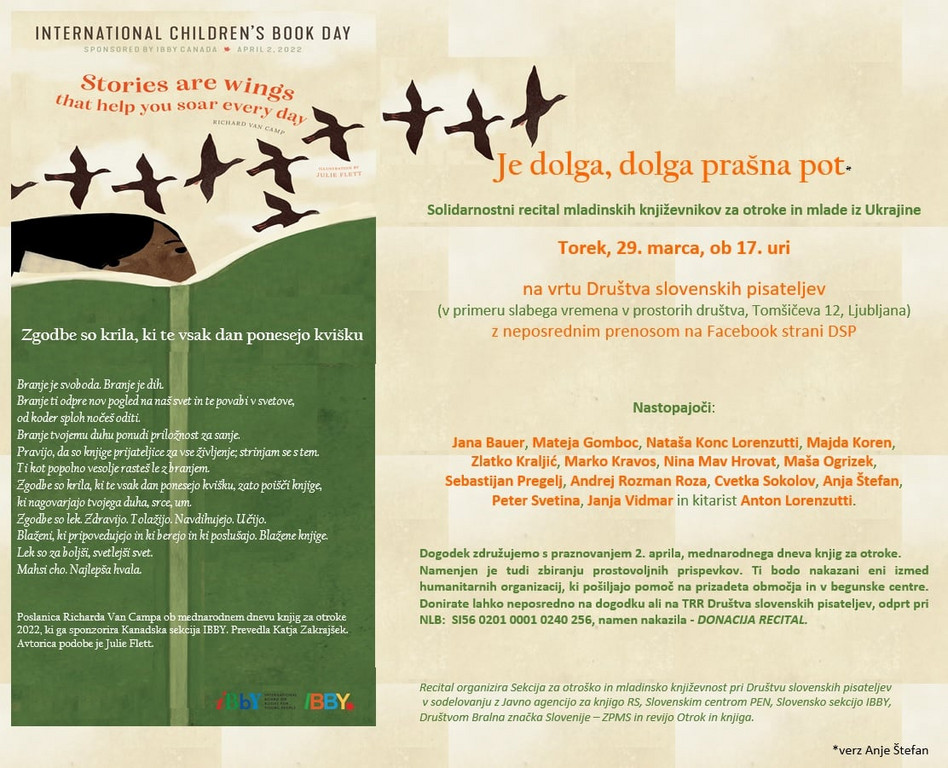 - Drawing competition related to the ICBD message: "Stories are wings" for children aged 7-12. The best 10 will participate in a workshop with Estonian illustrator Viive Noor.
